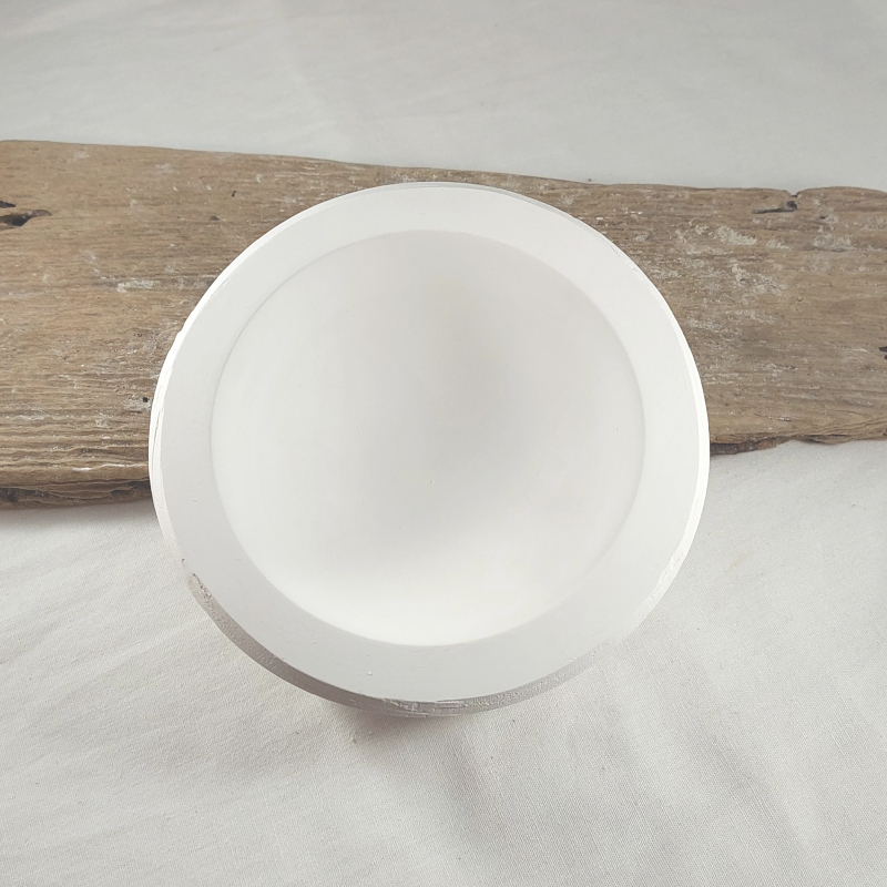 Denne form i gips kan bruges til at kvætse en skål. Til kvætsning eller støbning indvendigt. Formen her er ikke kugleformet – men i stedet afrundet som en skål. Brug den til f.eks. slikskål, morgenmadsskål eller lignende.