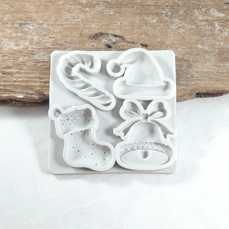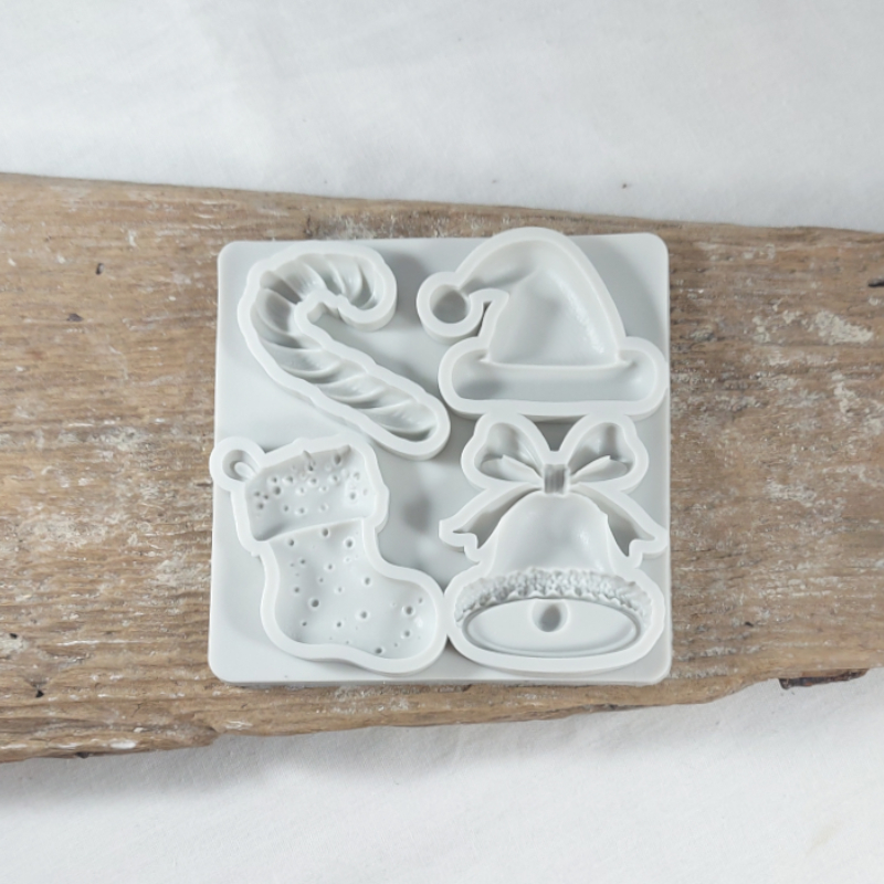 - Form til at lave aftryk af nissehue, juleklokke, julestrømpe og slikkepind/candy cane