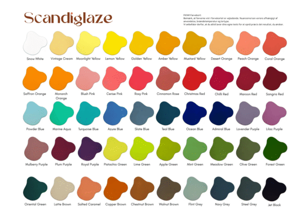 - Designet til at bevare farvens styrke efter glasering og brænding